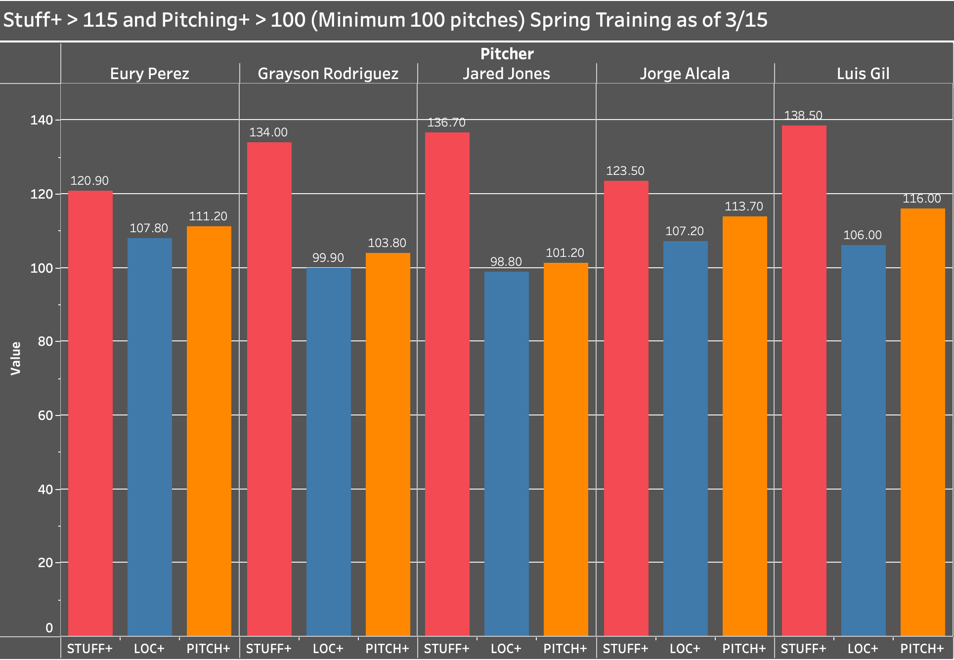 Take a look at his Stuff+ numbers from this Spring in comparison to some other big names: