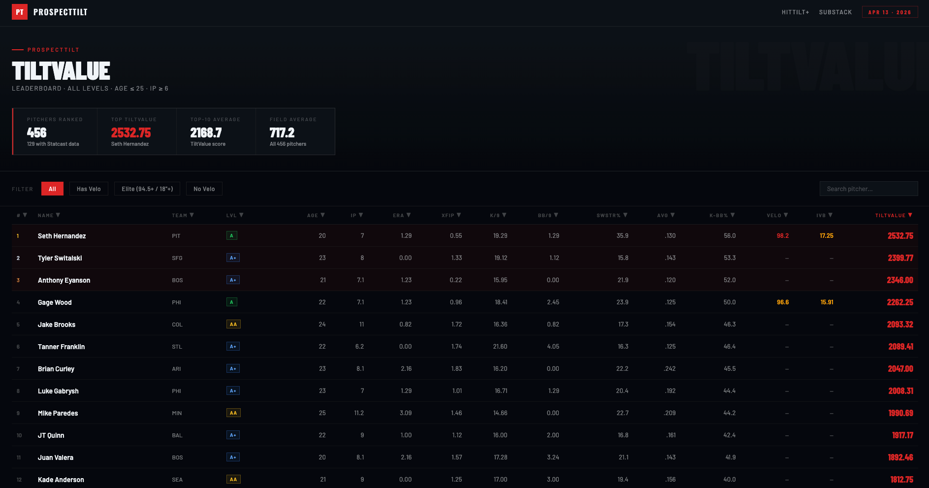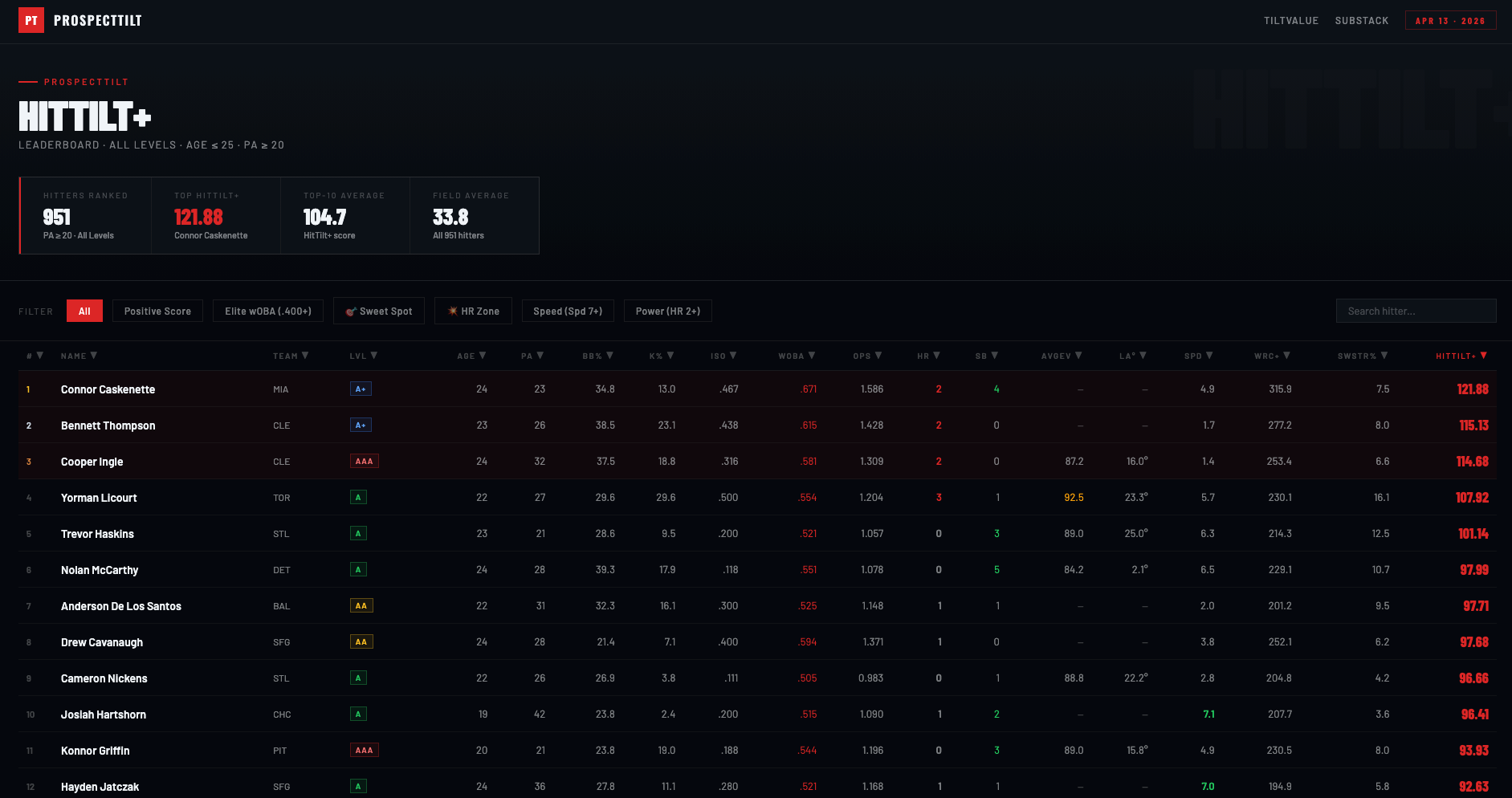 TiltValue & HitTilt+ - April 13th, 2026